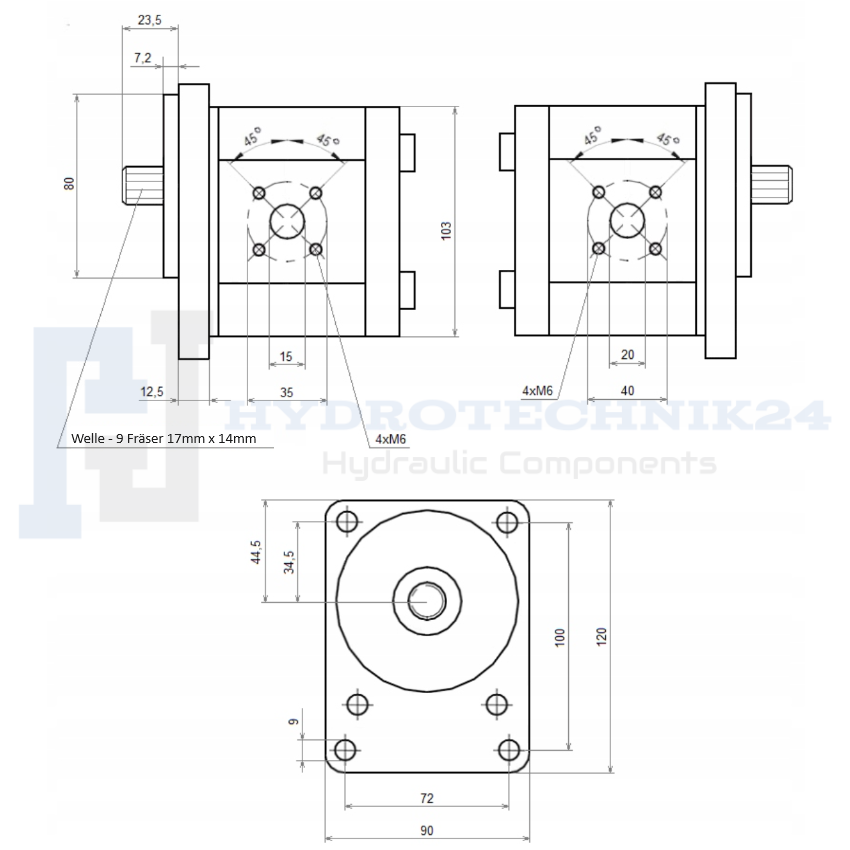 Hydraulikpumpe für einen EICHER-Traktor, welle mit 9 Fräsern