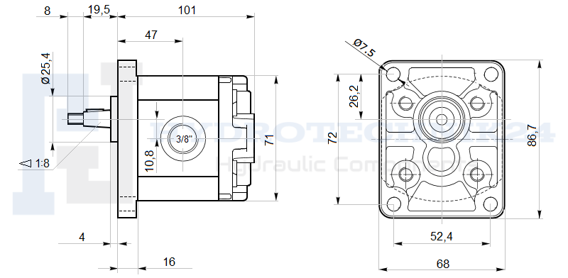 Hydraulikpumpe, Zahnradpumpe BG1 Förder-volumen: 1,60ccm/U Drehrichtung: rechts