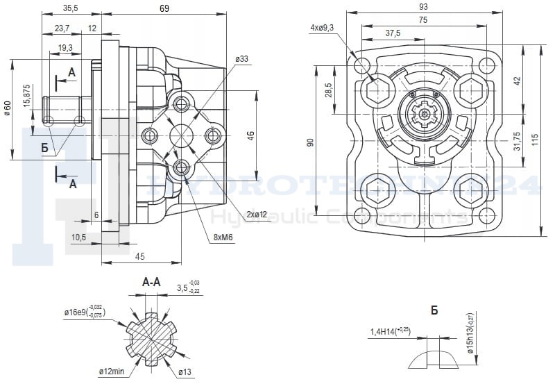 Hydraulikpumpe, Zahnradpumpe NSZ6, Fördervolumen: 6 ccm/U, Drehrichtung links