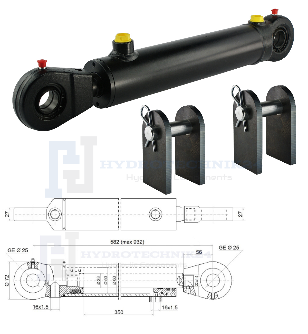 Hydraulikzylinder doppeltwirkend CJ2F 50/28/350 mit Gelenkaugen 25mm + Befestigung