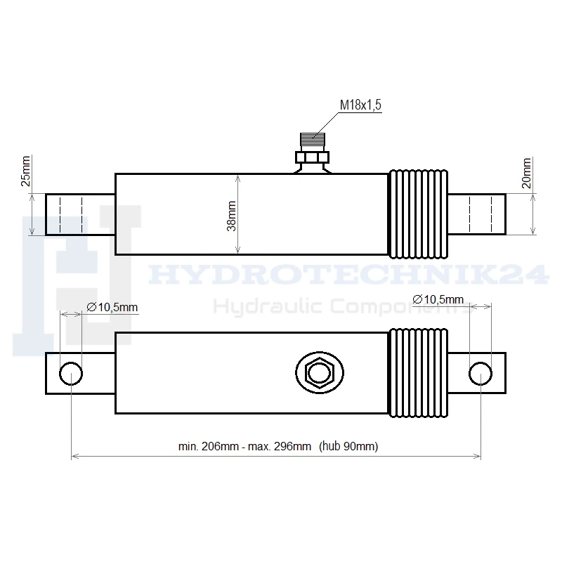 Hydraulikzylinder für Düngerstreuer. Hub 90mm, gewinde M18x1,5 - HT24