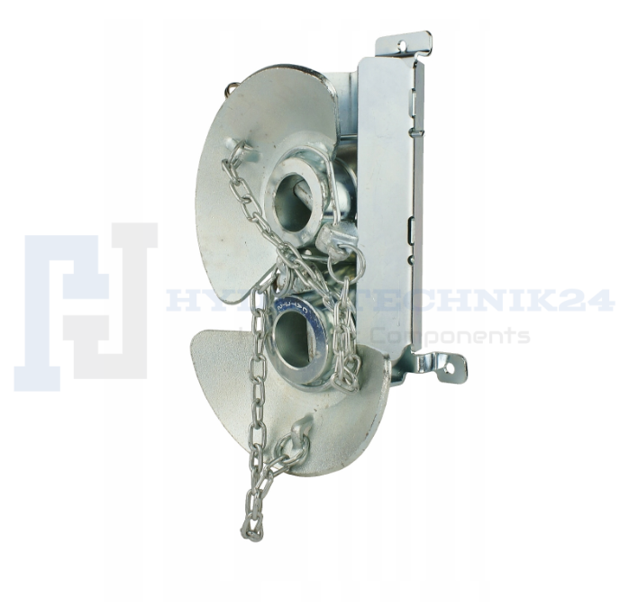 - Die Kugel mit Flansch ermöglicht ein schnelles An- und Abkuppeln der Maschine vom Schlepper. Verwendet im Befestigungssystem des Befestigungshakens am CBM-Unterlenker, Kategorie 2/2.