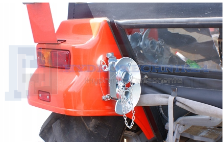 - Ein Beispielfoto des montierten Halterungen am Heck des Traktors auf der Innenseite des Kotflügels.
