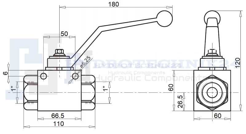 Hochdruck - kugelhahn 2 Wege RS 2 VIE 1" Innengewinde: 1" Max. Durchfluß: 140L/min Max. Betriebsdruck: 350bar
