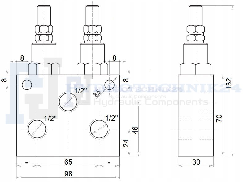 Hydraulik Doppel-Druckbegrenzungsventil VMPD Innengewinde: 1/2" Durchfluß: 70L/min Betriebsdruck: 50-250bar