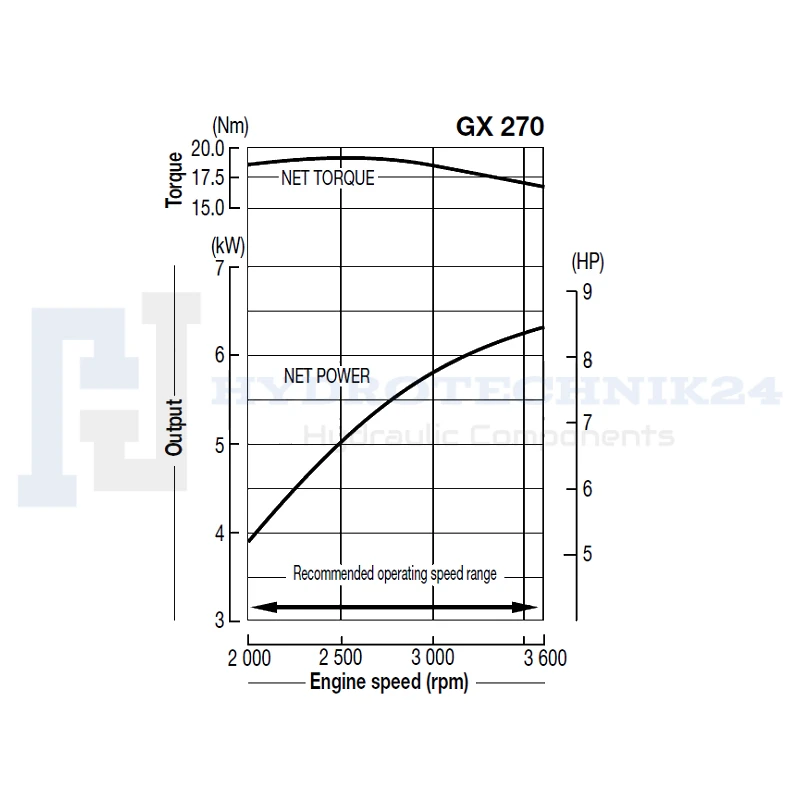 - Dauerleistung bei 3600 U/min: 5,1 kW (6,8 PS)