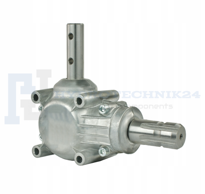 Winkelgetriebe in einem Aluminiumgehäuse für den Düngerstreuer. Übersetzungsverhältnis 1:1 Zapfwellenleistung